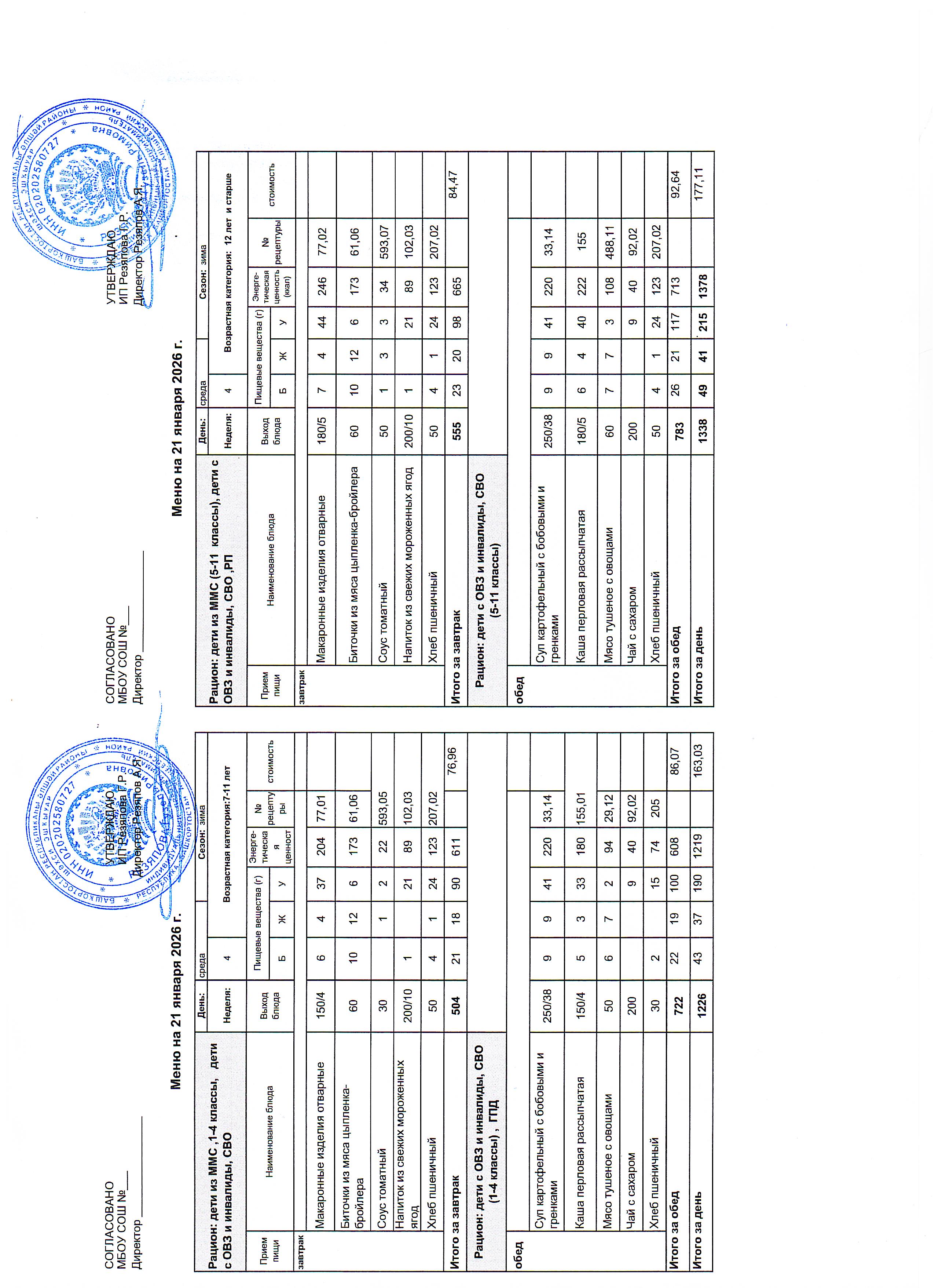 (Меню для детей из ММС, 1-11 классы, РП на 17 января 2023 года)