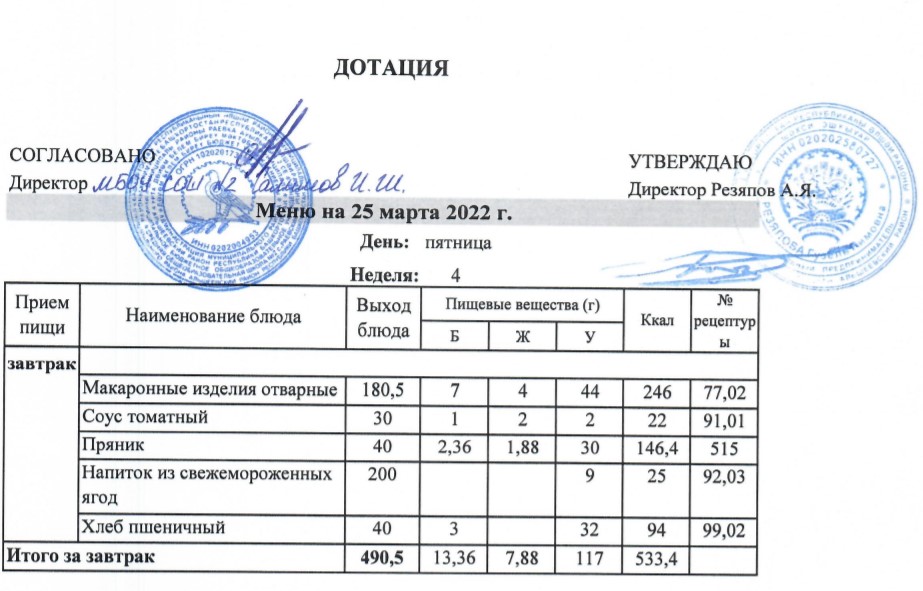 (Рацион питания на 25.03.2022)