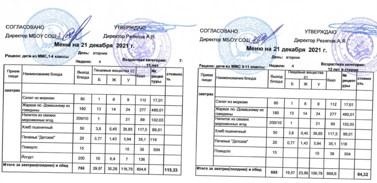 (Меню для детей из ММС, 1-11 классы, РП на 21 декабря 2021 года)