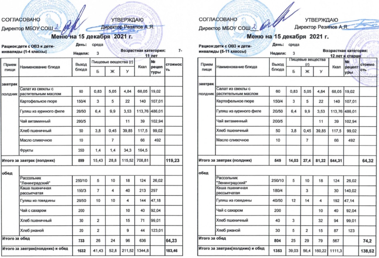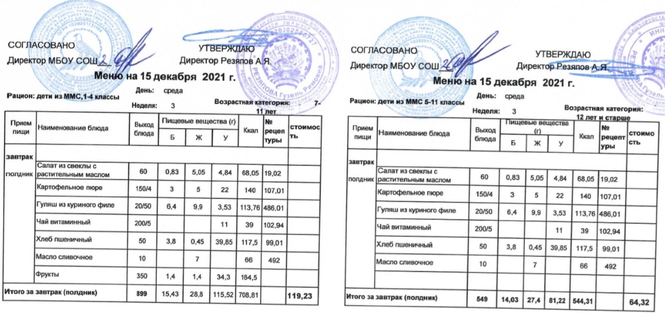 (Меню для детей из ММС, 1-11 классы, РП на 15 декабря 2021 года)