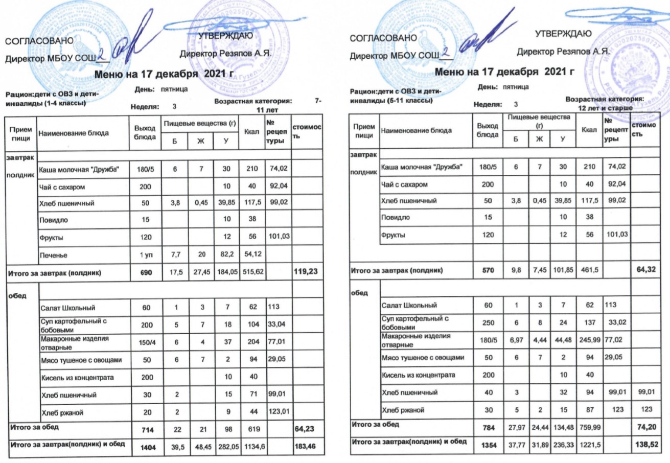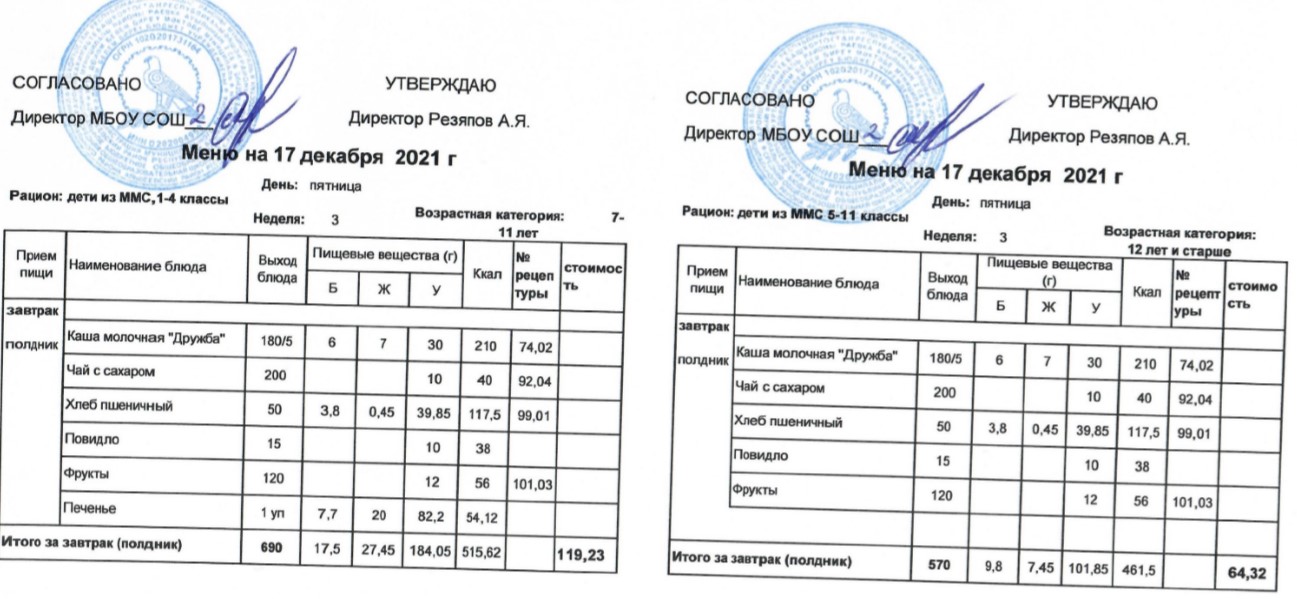 (Меню для детей из ММС, 1-11 классы, РП на 17 декабря 2021 года)