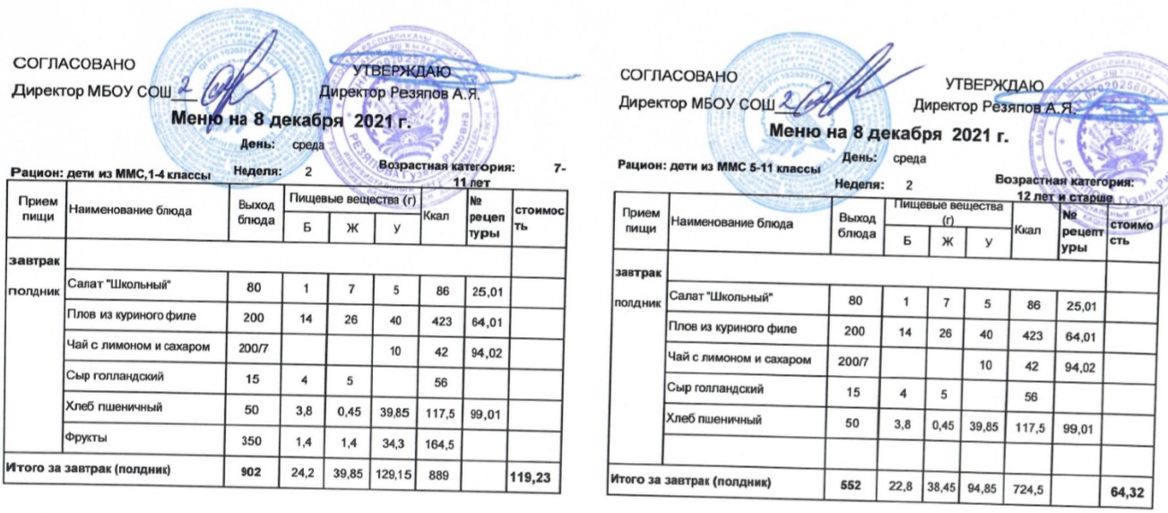 (Меню для детей из ММС, 1-11 классы, РП на 8 декабря 2021 года)