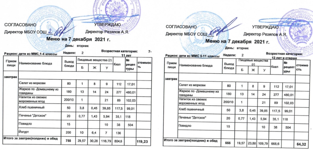 (Меню для детей из ММС, 1-11 классы, РП на 7 декабря 2021 года)