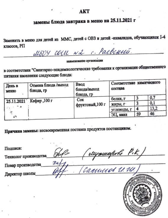 (Акт замены блюда завтрака в меню на 25.11.2021)