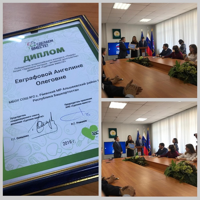 1 октября 2019 года в Башкортостане наградили победителей акций «Здоровое питание - активное долголетие» и «Русский Крым и Севастополь». Конкурс организован «Единой Россией» совместно с движением «Сделаем вместе!». Пятеро федеральных финалистов от республики получили путевки в лагерь «Артек».