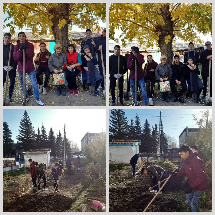 5 октября обучающиеся 10б класса (классный руководитель Шарафутдинова С.Р) оказали помощь ветерану педагогического труда Петровой Е.Л., проработавшей в нашей школе более 35 лет. Ребята помогли Евдокие Лукьяновне с уборкой территории, вскопали огорд и собрали мусор. Она поблагодарила ребят, пожелала здоровья и успехов в учебе!!!