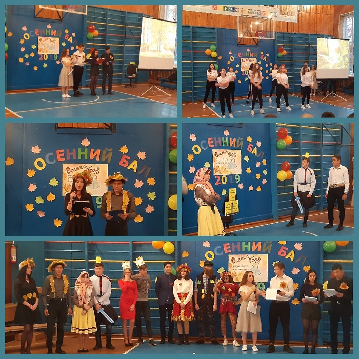 10 октября в школе прошел вечер "Осенний бал" для обучающихся 9-11 классов. Каждый класс представил свою пару, которая боролась за титул "Мисс и Мистер Осень — 2019". Было проведено 6 конкурсов, по итогам которых жюри определило победителей вечера. Пара была награждена почетной грамотой и коронами Мисс и Мистера Осень.