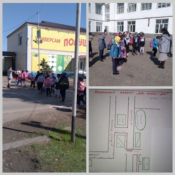 Ребята вспомнили правила дорожного движения, отгадывая загадки и отвечая на вопросы викторины. Была организована экскурсия «Переходи дорогу правильно» к пешеходному переходу вблизи школы.